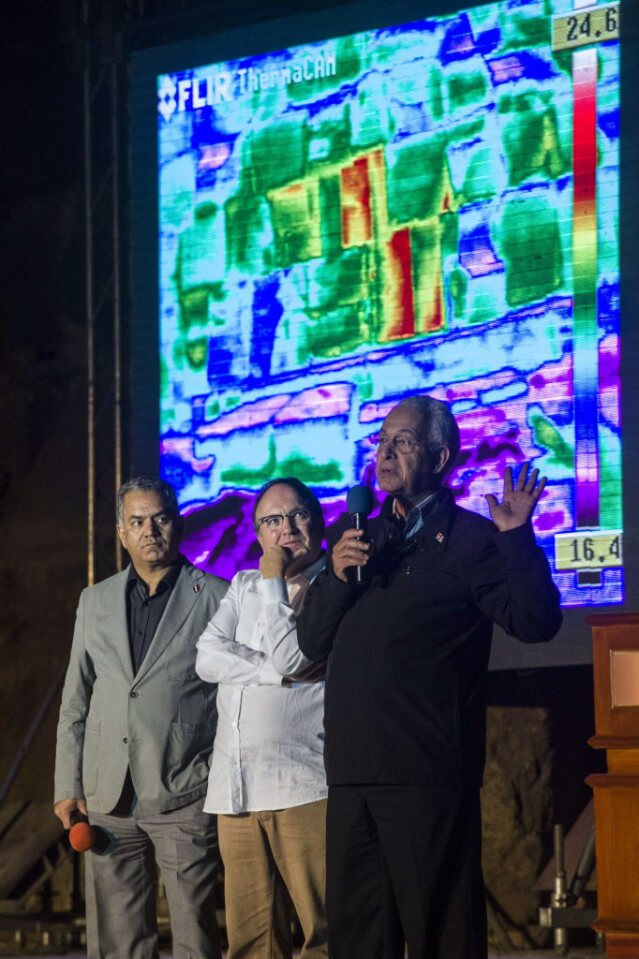 “The first row of the pyramid’s stones are all uniform, then we come here and find that there’s a difference in the formation,” said el-Damaty, pointing at the three stones showing higher temperatures.